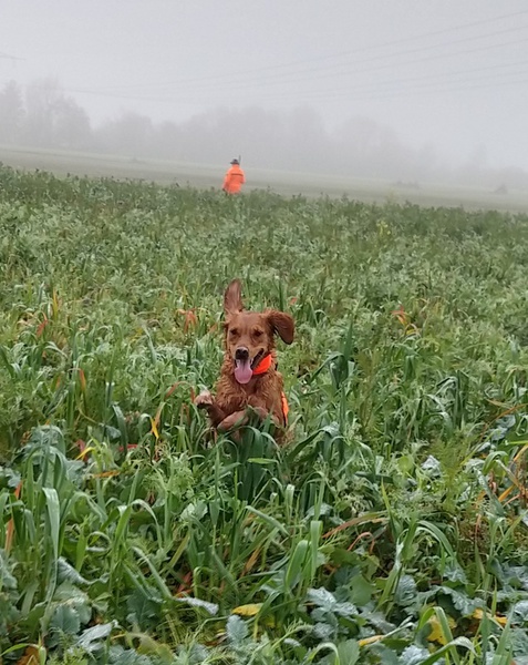Es ist Claras und auch meine 1. Fasanenjagd. Sie erledigt ihren "Job" genauso souverän, mit großer Freude, viel Trieb und Jagdverstand am Fasan, wie an der Ente.