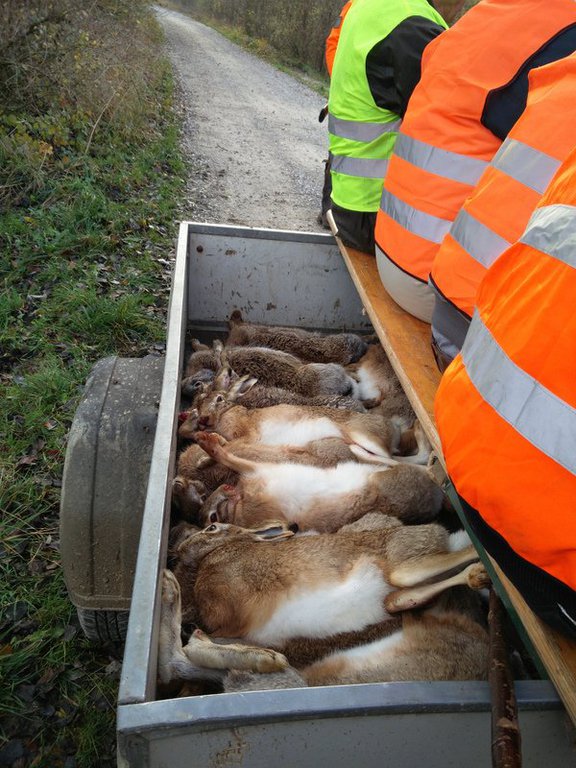 Clara legt in Zusammenarbeit mit dem Terrier von unserem Jagdkollegen Andi eine phantastische Nachsuche hin in einem riesigen Feld mit kniehohem, nassen Bewuchs Der Hase ist krankgeschossen und hält uns ca 20 Min gut auf Trab.