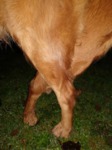Obwohl ich in 5 Sekunden bei ihr bin und sie raushole, hat sie sich ein schweres Hämatom und eine Knochenhautschwellung zugezogen durch das Anreißen in der Panik. Dabei muß man noch froh sein, dass nicht mehr passiert ist.