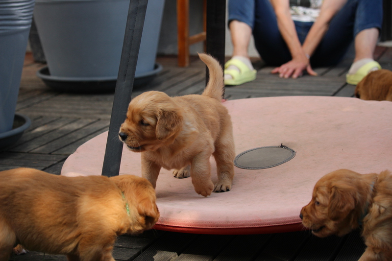 Besuch hatten die Zwergis heute von Chrissy und Timo. Einer der Buben wird dort ein ganz wunderbares Zuhause mit einem Goldenkumpel haben.