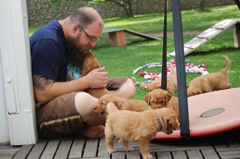 Heute war wieder Besuchstag. Elke und Thomas hatten ihren Spaß mit der ganzen Welpenschar. Auch bei den Beiden wird ein kleiner Rüde ein ganz wunderbares Zuhause finden.