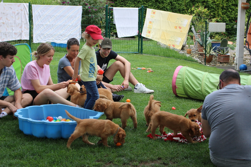 am Sonntag Michaela mit Familie und Freunde von Linus mit Kindern. Mir ist immer auch sehr wichtig, dass die Welpen mindestens einmal Kinder kennen gelernt haben. Und die Kinder hatten auch Megaspaß mit der Rasselbande :-))
